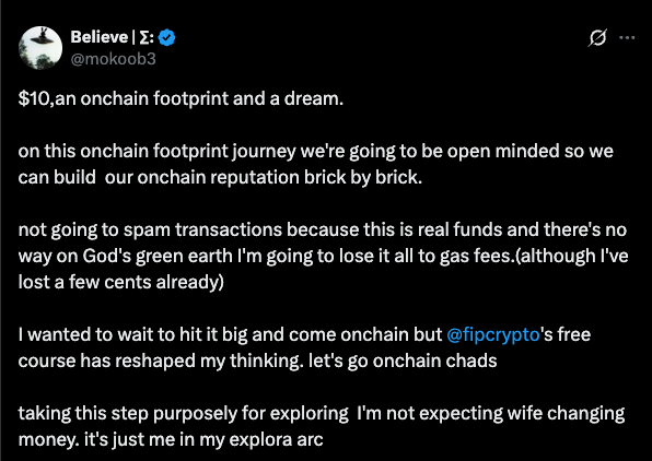 I'm just like you: Someone with a computer and a crypto wallet who puts in the work daily.